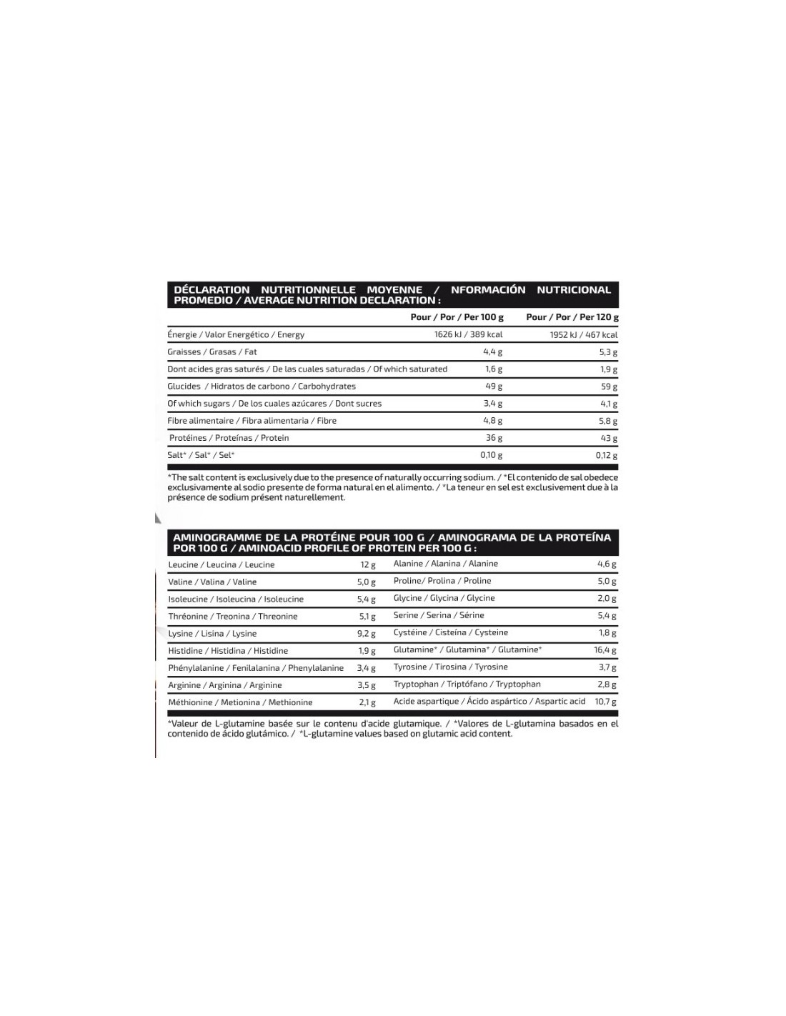 Ingredientes: Harina de avena (gluten), concentrado de proteína de suero de leche (LACTOMIN®), amilopectina, L-glicina, harina de arroz, fresa en polvo, aromas, edulcorante (sucralosa) y vitamina B6 (clorhidrato de piridoxina). Puede contener trazas de gluten (trigo), huevos, pescado y soja. CONTIENE CAZO DOSIFICADOR.