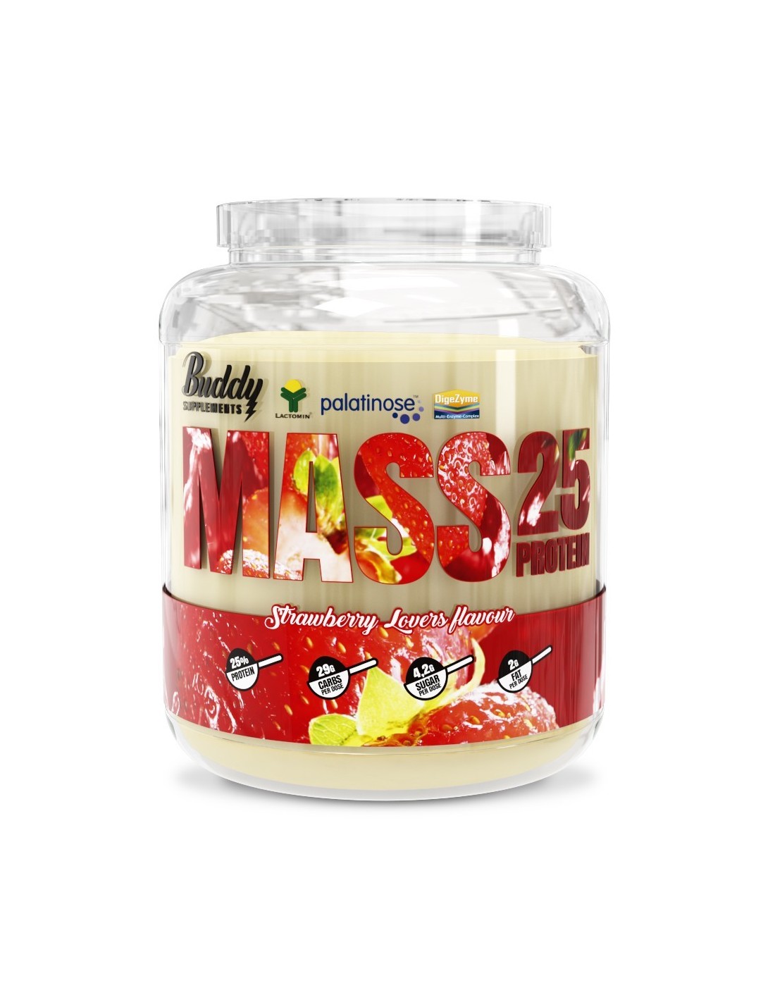 BUDDY SUPPLEMENTS® te trae MASS25 PROTEIN, un producto que reúne lo mejor de la proteína y de los carbohidratos, para conseguir un equilibrio perfecto y ayudarte a lograr tus objetivos de una forma rápida, efectiva y sin renunciar al mejor sabor del mercado.