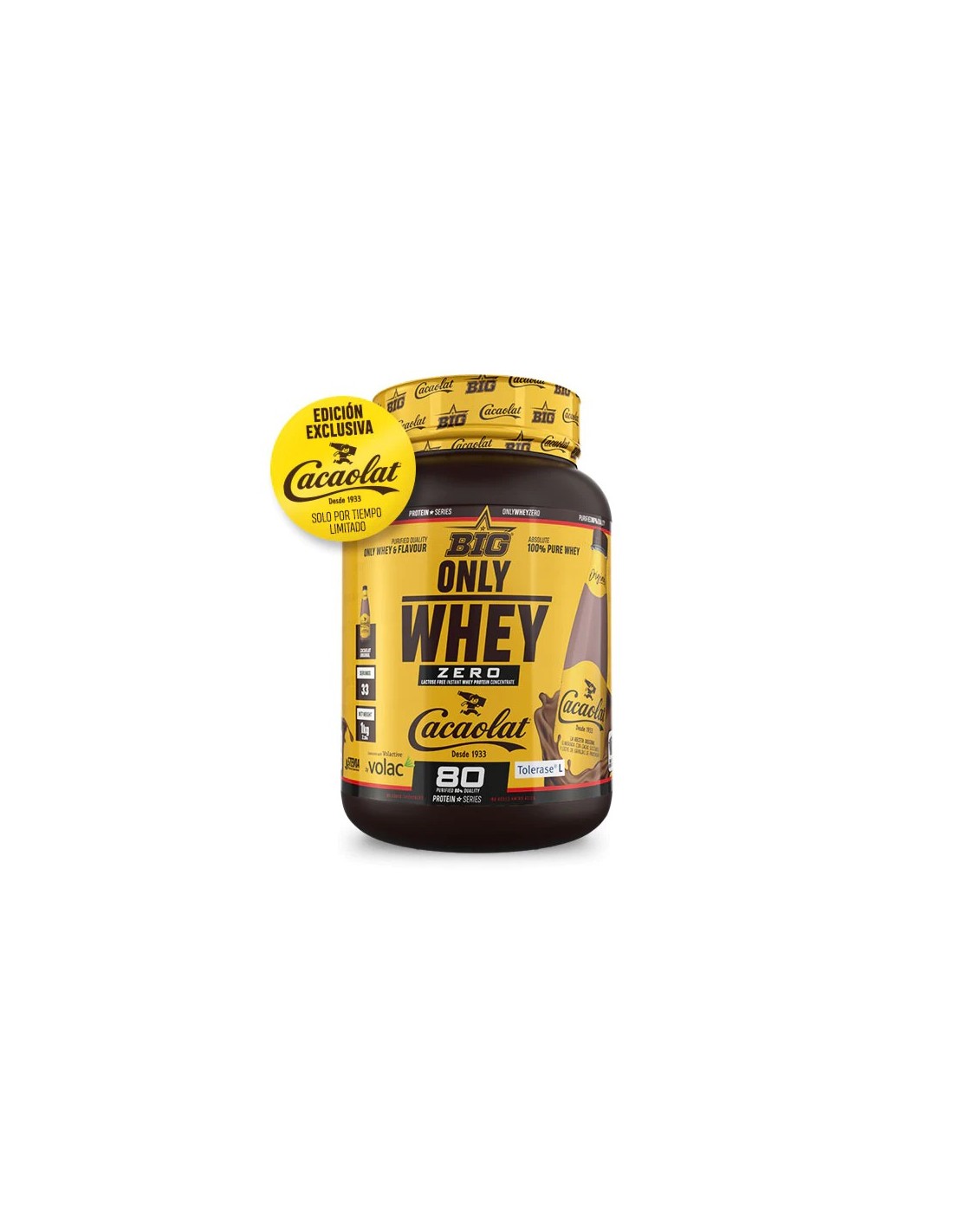 ONLY WHEY ZERO sabor CACAOLAT® Original, la nueva proteína de concentrado de suero sin lactosa de BIG®, elaborada con Volactive® UltraWhey 80 Instant, la proteína elegida por las mejores marcas internacionales de suplementación deportiva y uno de los mejores concentrados de suero del mercado, y con la novedosa patente Tolerase L-Lactasa®, una formulación con enzimas de lactasa que mejora significativamente la digestión de la lactosa contenida en el suero. Sin duda, un valor añadido que marca una diferencia para la mayoría de consumidores que busca una proteína en polvo de la más alta calidad.